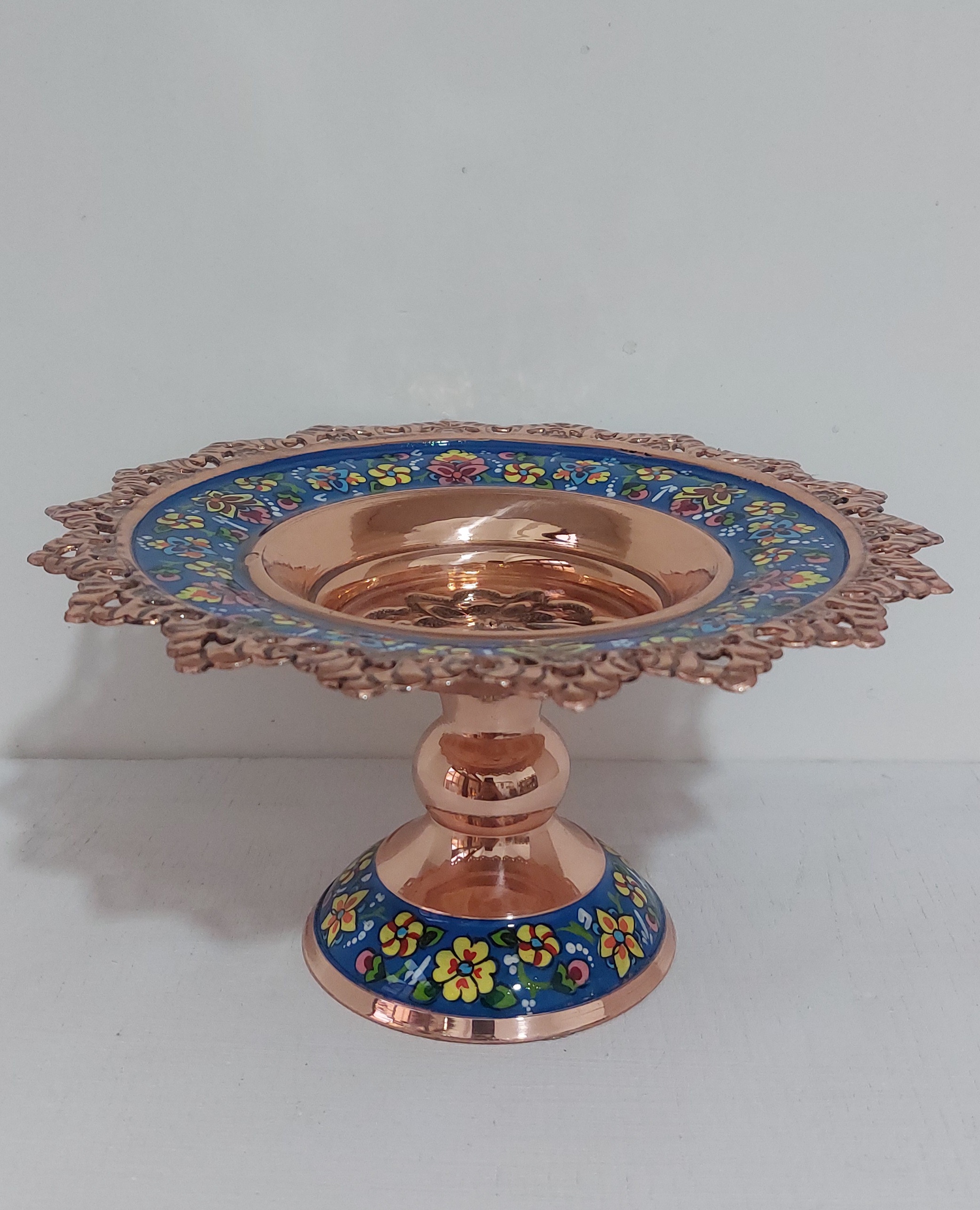 شیرینی خوری مسی مس پرداز با طراحی و رنگبندی زیبا قابل سفارش در ابعاد و اندازه های متفاوت مناسب پذیرایی و تزئین و هدیه ارزشمند برای هنر دوستان