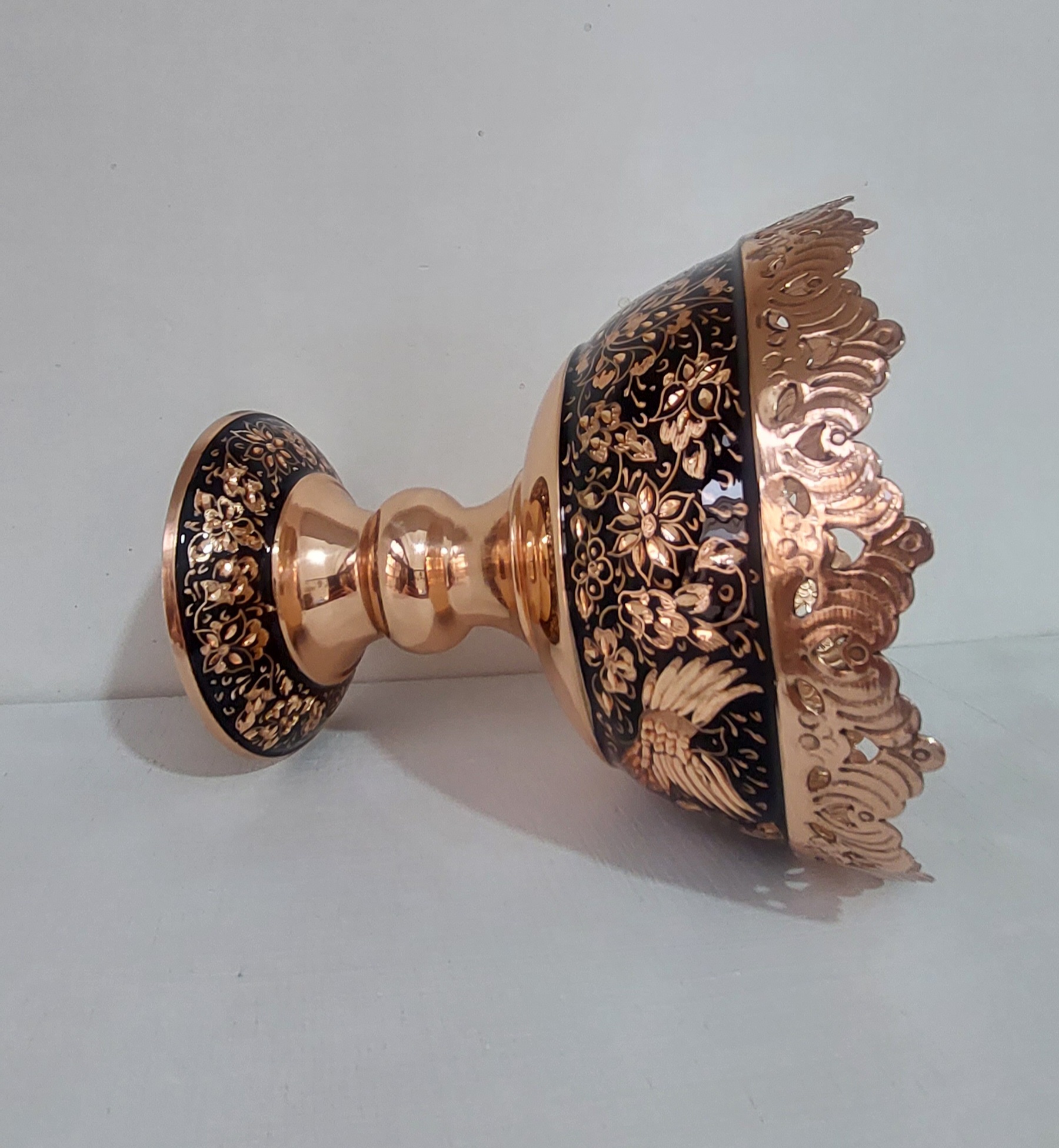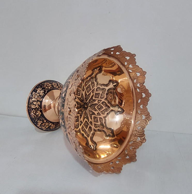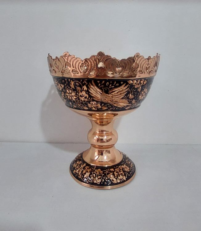 آجیل خوری الماس تراش با طراحی زیبا از گل و مرغ با ظرافت چشم گیر و قلمزنی داخل ظرف و شبکه بری دور ظرف زیبایی این محصول را چند برابر کرده.این محصول قابل استفاده برای پذیرایی(آجیل خوری و شکلات خوری) و تزیینی و همچنین مناسب هدیه است.